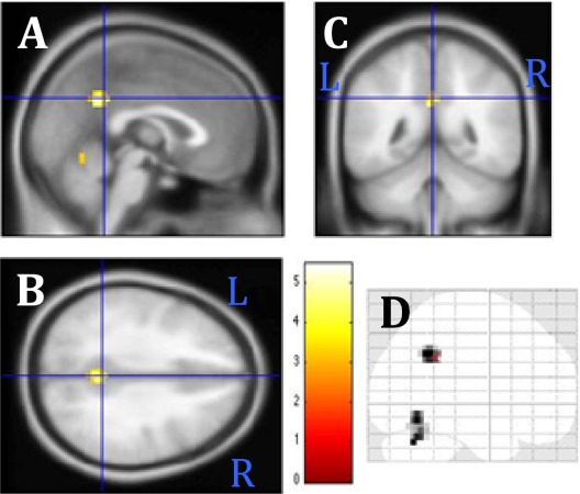It is, however, difficult to interpret a 23 voxel decrease in precuneus activity in 14 subjects as a reflection of such a complex therapeutic change, especially since this brain region is involved in both self-referential processing and episodic memory retrieval.