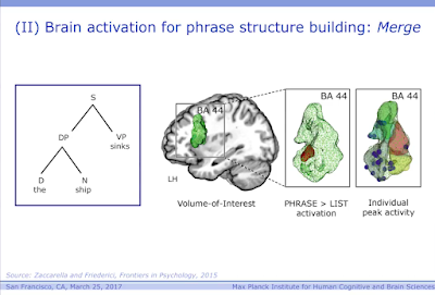Merge in the Human Brain: A Sub-Region Based Functional Investigation in the Left Pars Opercularis. Zaccarella E, Friederici AD. Front Psychol. 2015 Nov 27;6:1818.